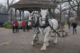 The horses come from Operation Centaur, a charity based in Richmond Park protecting now rare traditional working horses and equine-assisted therapy, to improve the health and wellbeing of communities.